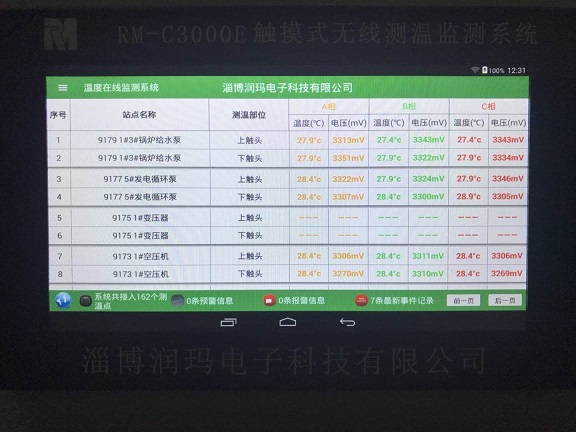 9月17日下午到達**能源公司,這個測溫系統需要安裝的有180個測溫點,2臺RM-C3000G接收主機和 1臺RM-C3000E接收主機。本次工程訂貨安裝非常緊急,客戶要求所有測溫點必須在19日0時前安裝完成。其中有5個柜子特別緊急必須在17日21時點之前必須完成。根據客戶要求進行柜號排列,并做記錄,然后按順序找出10KV配電室這5個開關柜對應的測溫點序號進行安裝。小車推出后發現觸頭為倒錐形,合金片收緊困難,溫度探頭難以安裝,施工人員克服種種困難,保質保量并提前2小時完成,主機全部接收到已安裝探頭的溫度數據。