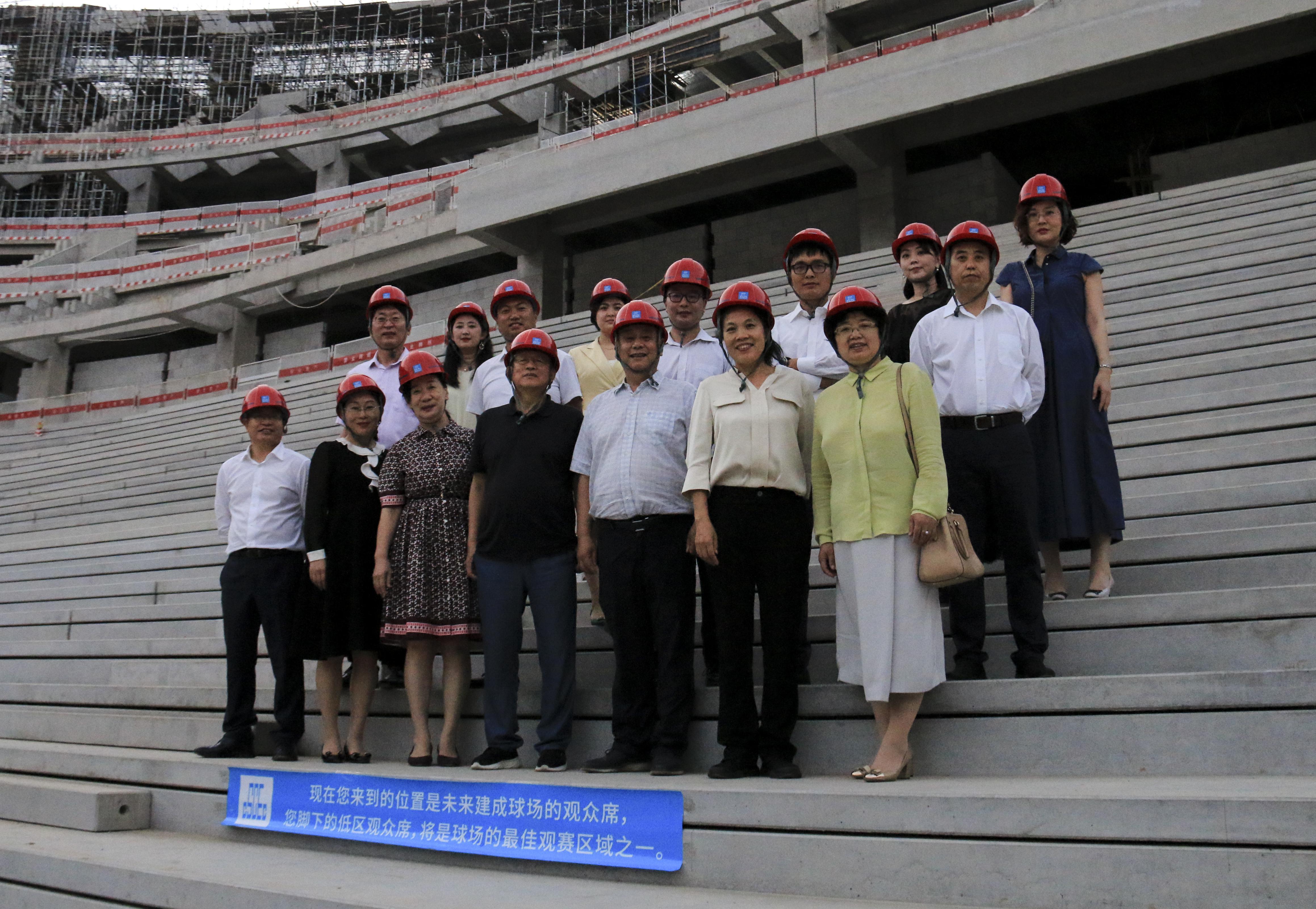 会后,全体与会人员在会议室合影留念,并在新一任会长耿树丰的带领下,参观了大连市正在建设中的2023年亚洲杯主赛场梭鱼湾专业足球场。