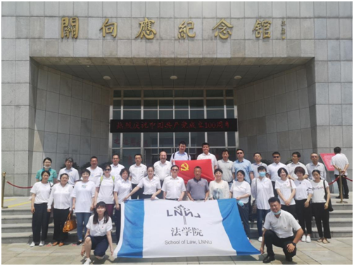 为庆祝中国共产党成立100周年,7月2日上午,法学院党总支组织学院全体教工前往关向应纪念馆参观学习,缅怀先烈。在关向应同志雕塑前,法学院党总支书记李艳同志带领法学院全体教工党员庄严宣誓,重温入党誓词,牢记初心使命,传承红色精神。