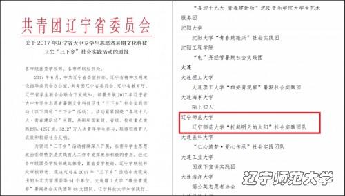 在2018年1月9日共青团辽宁省委员会下发的《关于2017年辽宁省大中专学生志愿者暑期文化科技卫生“三下乡”社会实践活动的通报》,beat365官网的“托起明天的太阳”赴河南杜庄小学普法宣传和义务支教团荣获“辽宁省大中专学生志愿者暑期“三下乡”社会实践活动先进团队”称号。