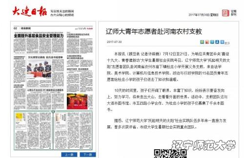 “托起明天的太阳”赴河南杜庄小学普法宣传和义务支教社会实践活动还受到《大连日报》的关注,报道了社会实践的相关活动,收到良好的社会声誉。