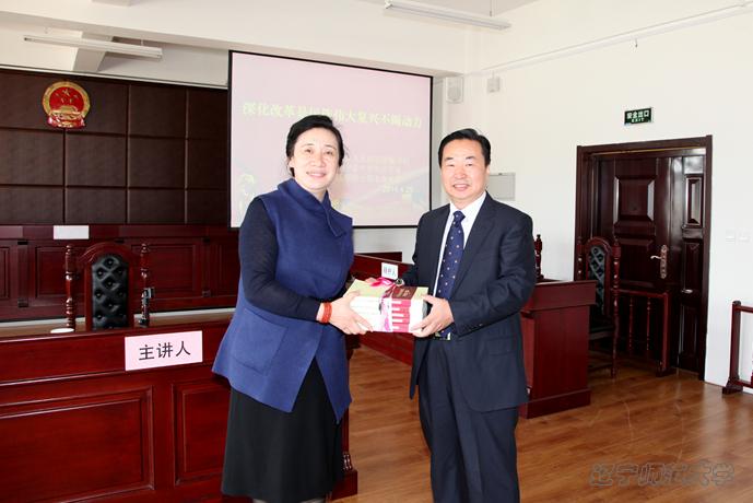 在他即将退出领导岗位之际,将其所收藏的法学文献和珍贵的司法资料千余册、价值万余元无偿捐赠给法学院。院长丁慧教授代表学院全体师生致辞。在讲话中,她对都本有校友的义举给予了高度评价和赞扬,感谢其长期以来对法学院发展所给予的大力帮助和支持,并表达了beat365英国官网网站法学院作为所有校友的共同精神家园愿为各位校友提供力所能及的帮助;同时,表示愿意以都本有校友鼎力相助为动力,不断积累办学实力、形成办学特色、加快学院发展。