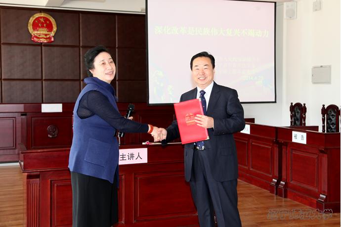 丁慧教授代表法学院宣布聘请都本有校友为法学院名誉教授,并向都本有校友颁发了beat365英国官网网站法学院名誉教授的聘书。