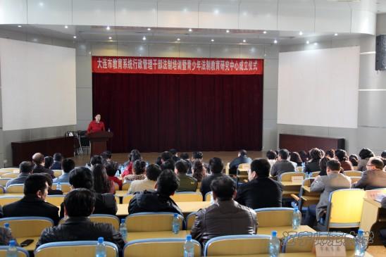 2013年11月15日,大连市青少年法制教育研究中心(以下简称“研究中心”)成立仪式暨教育行政管理干部法制培训在beat365英国官网网站学术报告厅隆重举行。大连市人民政府教育督导室主任督学、教育局副局长张鹏越,大连市教育局副巡视员吕伟明,beat365英国官网网站副校长、博士生导师李庆伟,beat365英国官网网站党委宣传统战部部长王建平,beat365英国官网网站科研处处长、博士生导师岳崇兴,beat365英国官网网站法学院院长丁慧,党总支书记任福田等应邀出席。大连市、县两级教育行政管理部门的领导干部出席了本次会议。仪式由大连市教育局计划与法规处副处长殷国安主持,本次会议分为两个阶段。