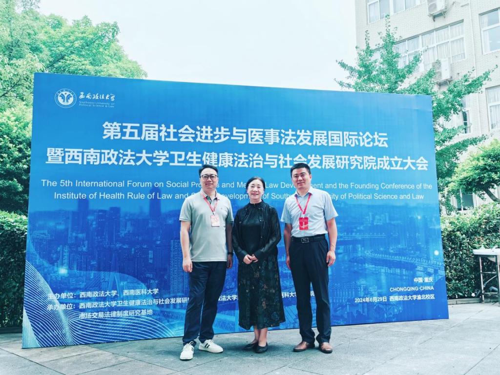 6月29日,第五届社会进步与医事法发展国际论坛暨西南政法大学卫生健康法治与社会发展研究院成立大会,在西南政法大学(渝北校区)隆重举行。国家卫生健康委员会法规司副司长龚向光,西南政法大学党委书记樊伟,西南医科大学党委副书记、校长张春祥,中国卫生法学会常务副会长沙玉申,重庆市高级人民法院审判委员会专职委员贾科等领导出席并致辞。西南政法大学党委常委、副校长李燕主持论坛。beat365官网beat365英国官网网站院长,博士生导师陈光教授,法学一级学科带头人丁慧教授,beat365英国官网网站副院长刘耀东副教授受邀出席了本次论坛。