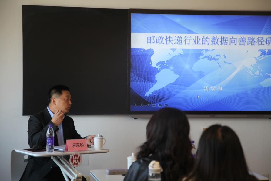 同时,汤局长还着重强调了邮政快递的数据保护的核心以及现如今加强用户个人数据信息保护的一系列手段,指出未来邮政快递行业仍需要继续加强技术创新和制度建设,不断提升数据保护的范围能力和水平。最后,汤局长分享了自己在邮政快递行业数据研究领域的最新成果与见解,为与会师生带来了前沿的学术知识和丰富的实践经验。